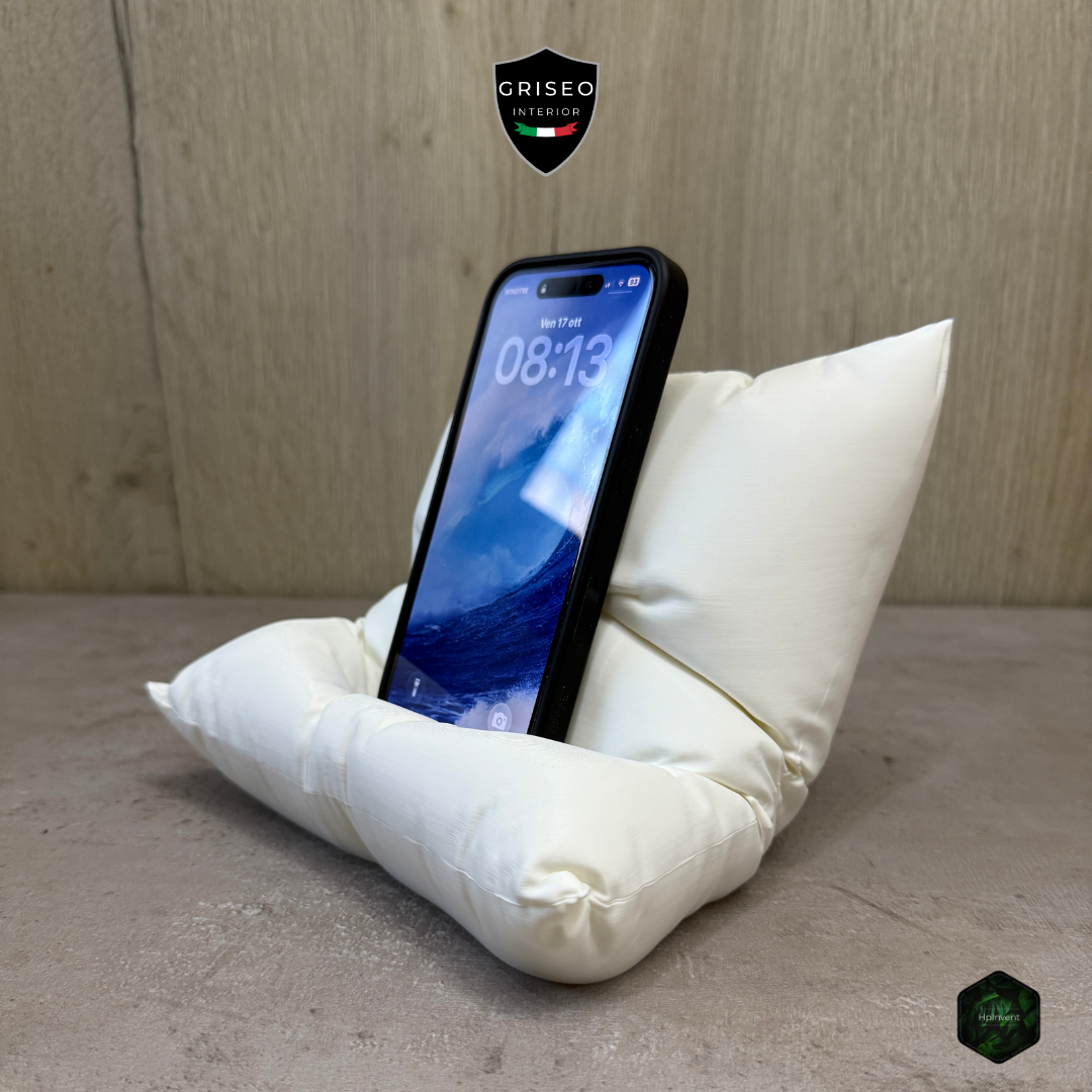Scopri Morfeo , il supporto per telefono a forma di cuscino che permette al tuo dispositivo di rilassarsi tanto quanto te. Ispirato al comfort e alla semplicità, questo supporto unico unisce praticità a un'estetica accogliente e di design.
