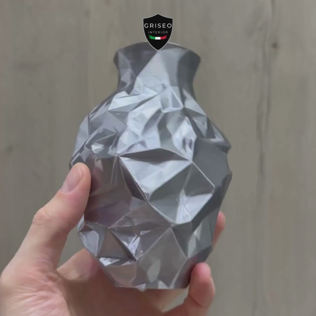 Realizzato utilizzando una tecnologia di stampa 3D di alta qualità e un materiale PLA simile al metallo , il vaso Prisma riproduce l'aspetto del metallo spazzolato, pur rimanendo leggero ed ecologico.